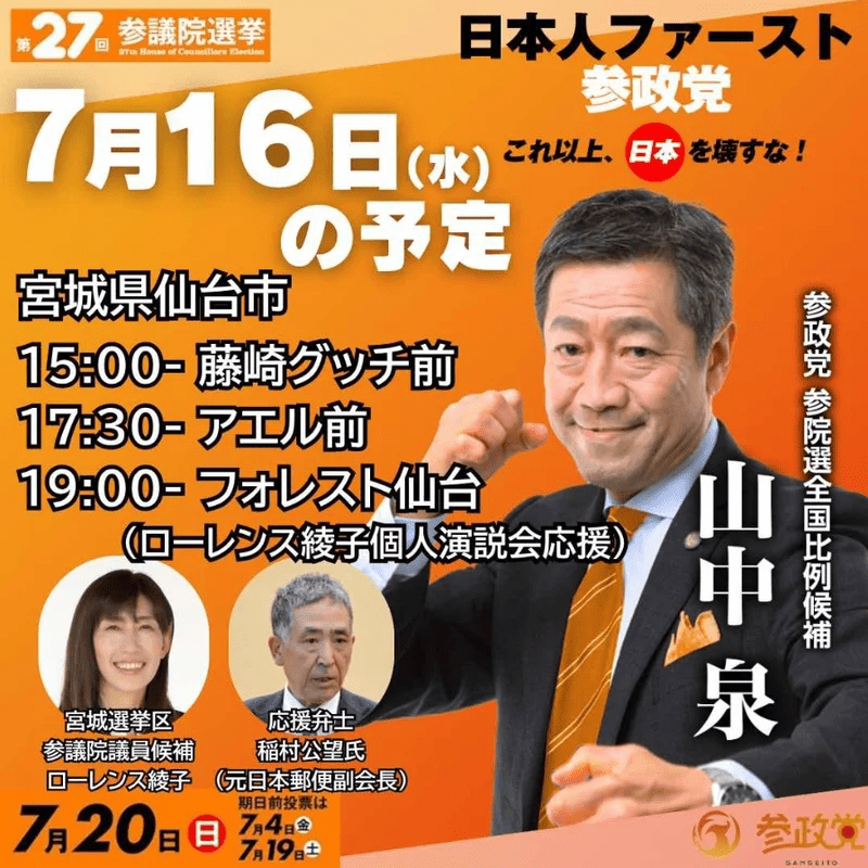 参政党は私が進言し、唯一の「郵政再公営化、職員の公務員化」を公約にしている国政政党だ。
